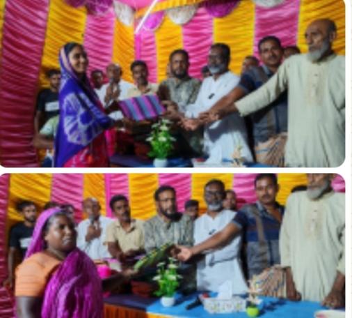 মহিলাদের মাঝে শাড়ি কাপড় বিতরণ কররেন।।
