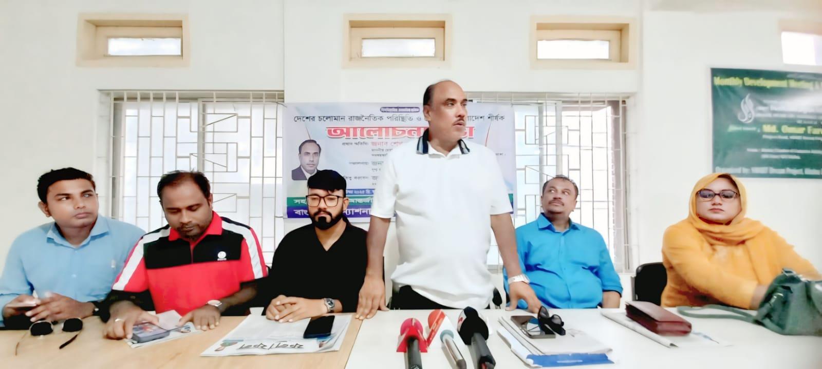 খুলনায় দেশের চলমান রাজনৈতিক অচলাবস্থা ও জাতীয় ঐক্য গঠনের সম্ভাবনা নিয়ে এক গুরুত্বপূর্ণ আলোচনা সভা অনুষ্ঠিত হয়েছে।মঙ্গলবার (৩০ সেপ্টেম্বর) বিকেল ৪টায় খুলনা চেম্বার অব কমার্স ভবনের সম্মেলন কক্ষে অনুষ্ঠিত সভায় অংশগ্রহণকারীরা দেশের রাজনৈতিক ভবিষ্যৎ নিয়ে উদ্বেগ প্রকাশ করেন এবং সংলাপের মাধ্যমে সমস্যার সমাধানের আহ্বান জানান।সভায় প্রধান অতিথি বাংলাদেশ ন্যাশনাল ডেমোক্রেটিক পার্টি বিএনডিপি’র চেয়ারম্যান ও জাতীয় ঐক্য সমন্বয় পরিষদের কেন্দ্রীয় কমিটির সমন্বয়কারী ও মিডিয়া উইং চীফ শেখ মোস্তাফিজুর রহমান বলেন চলমান প্রেক্ষাপটে গণভোট’ই সমস্যার সমাধান হতে পারে । তিনি দৃঢ়তার সাথে বলেন, সংবিধান সংস্কার, পিআরপি পদ্ধতি নিয়ে যে সকল সমস্যা ইতিমধ্যে সর্বস্তরে আলোচনা হচ্ছে এর থেকে জাতিকে পরিত্রান পেতে হলে, সংবিধান সংস্কার করেই ফেব্রুয়ারীতে নির্বাচন এখন সময়ের দাবী।সভায় সভাপতিত্ব করেন বাংলাদেশ ন্যাশনাল ডেমোক্রেটিক পার্টির মহাসচিব শাহবাজ জামান।বক্তব্য রাখেন করিম ও মোস্তফা, মোঃ জাহাঙ্গীর হোসেন, জোবায়ের ইসলাম অলি, এস কে রিপন, সোহানা খানম প্রমুখ। অনুষ্ঠানটি আয়োজন ও সহযোগিতা করেন আন্তর্জাতিক মানবাধিকার ও গণমাধ্যম কেন্দ্র।প্রধান অতিথি শেখ মোস্তাফিজুর রহমান তাঁর বক্তব্যে দেশের রাজনৈতিক পরিস্থিতি নিয়ে গভীর উদ্বেগ প্রকাশ করেন। তিনি বলেন, “বর্তমান বাংলাদেশের রাজনৈতিক পরিস্থিতি গভীর সংকটাপন্ন। গণতন্ত্রের মৌলিক অধিকার নিশ্চিত করতে হলে সুষ্ঠু ও অংশগ্রহণমূলক নির্বাচনের পরিবেশ গড়ে তোলা জরুরি। রাজনৈতিক দলগুলোর মধ্যে পারস্পরিক শ্রদ্ধা ও সংলাপ ছাড়া সমস্যার সমাধান সম্ভব নয়। জাতীয় ঐক্যের মাধ্যমে দেশে স্থিতিশীলতা ফিরিয়ে আনা যেতে পারে।” তিনি আরও বলেন, “দেশের উন্নয়ন ও শান্তি নিশ্চিত করতে হলে রাজনৈতিক স্বার্থের ওপরে জাতীয় স্বার্থকে অগ্রাধিকার দিতে হবে।আমরা চাই, সকল রাজনৈতিক দল একযোগে বসে দেশের ভবিষ্যৎ নিয়ে আলোচনা করুক।চেয়ারম্যান শেখ মোস্তাফিজুর রহমান আরও মন্তব্য করেন, “পিআর পদ্ধতি জনগণের কল্যাণ বয়ে আনবে।এটি শুধুমাত্র রাজনৈতিক সমস্যা নয়, বরং একটি দীর্ঘমেয়াদি সমাধান। পিজার পদ্ধতি বাস্তবায়িত হলে সমাজে অংশগ্রহণমূলক সিদ্ধান্ত গ্রহণ ও উন্নয়নের গতি বৃদ্ধি পাবে। এটি দেশের স্থিতিশীলতা ও সমৃদ্ধির পথ সুগম করবে।”