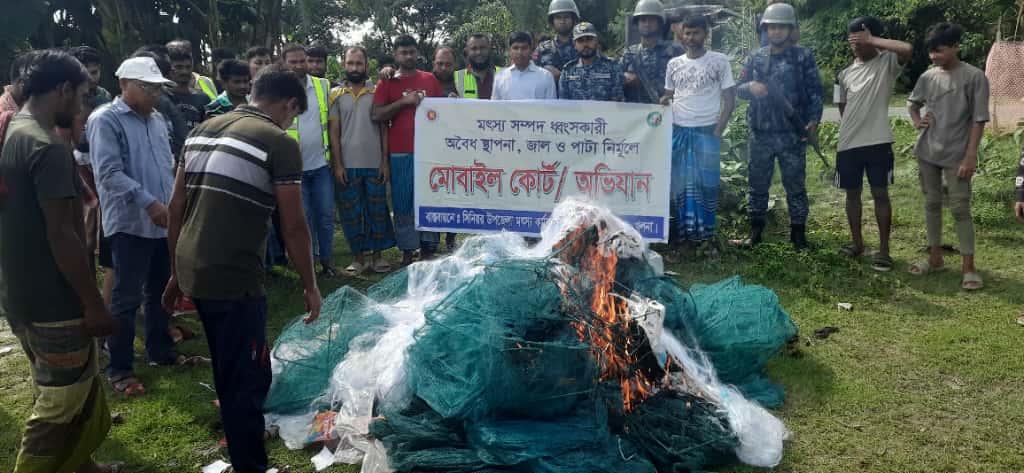 পরবর্তীতে জব্দকৃত নিষিদ্ধ জালসমূহ উপজেলা মৎস্য কর্মকর্তার নির্দেশে যৌথবাহিনীর উপস্থিতিতে জন সম্মুখে পুড়িয়ে ধ্বংস করা হয়।