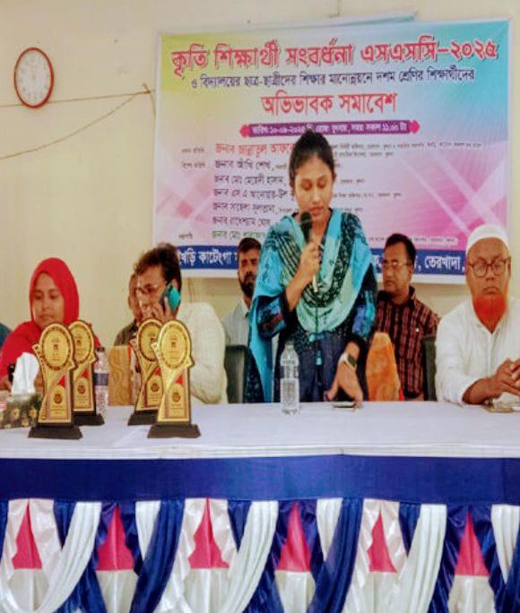 বুধবার ১০ ই সেপ্টেম্বর সকাল সাড়ে ১১ টার দিকে খুলনার তেরখাদা উপজেলা সদরের সরকারি ইখড়ি কাটেঙ্গা ফজলুল হক মডেল মাধ্যমিক বিদ্যালয়ের জিপিএ প্রাপ্ত কৃতি শিক্ষার্থীদের সংবর্ধনা অনুষ্ঠান ও অভিভাবক সমাবেশ বিদ্যালয়ের হলরুমে অনুষ্ঠিত হয়।