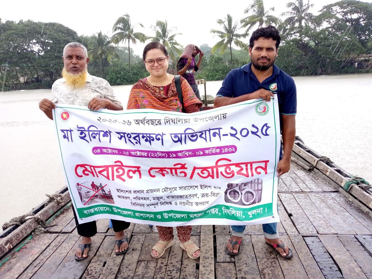 দিঘলিয়ায় ইলিশ সম্পদ সংরক্ষণ ও সম্প্রসারণে ইলিশ মাছ শিকার বন্ধের প্রথম দিন দিঘলিয়া উপজেলা প্রশাসন ও দিঘলিয়া মৎস্য অধিদপ্তর আয়োজনে অভিযান ও মোবাইল কোর্ট এবং লিফলেট বিতরণ