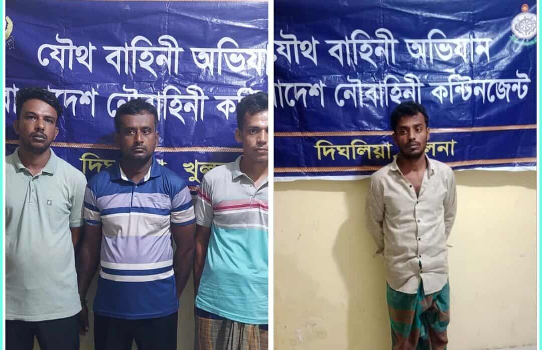 বাংলাদেশ নৌবাহিনীর নেতৃত্বে পরিচালিত অভিযানে দিঘলিয়া থানা পুলিশও অংশ নেয়। এসময় নিজ নিজ বাড়ি থেকে মঞ্জু শিকদার, বেঞ্জির শিকদার, ফিরোজ সিকদার ও শামীম শেখকে গ্রেফতার করা হয়। পরে তাদের আইনগত প্রক্রিয়ার জন্য দিঘলিয়া থানায় হস্তান্তর করা হয়। স্থানীয় বাসিন্দারা নৌবাহিনীর এ ধরনের অভিযানকে স্বাগত জানিয়ে সন্তোষ প্রকাশ করেছেন।বাংলাদেশ নৌবাহিনী এক সংবাদ বিজ্ঞপ্তিতে জানায়, বর্তমান সরকারের নির্দেশনা বাস্তবায়নের অংশ হিসেবে দায়িত্বপ্রাপ্ত এলাকাগুলোতে মাদক, সন্ত্রাস ও অপরাধমূলক কর্মকাণ্ড দমনে নিয়মিত অভিযান অব্যাহত থাকবে। একই সঙ্গে অবৈধ অস্ত্র উদ্ধার ও আইনশৃঙ্খলা পরিস্থিতি সমুন্নত রাখতে টহল আরও জোরদার করা হবে।