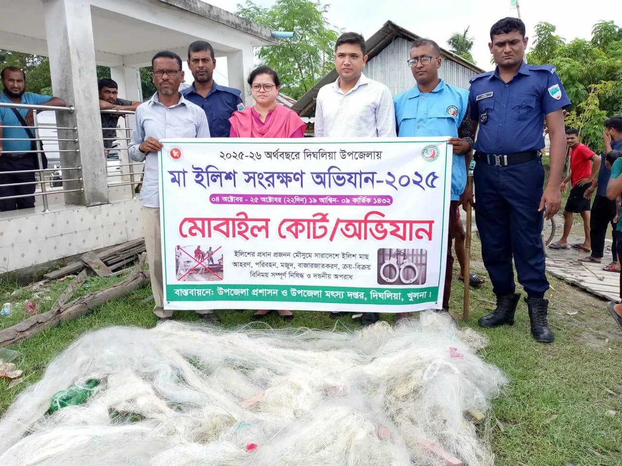 দিঘলিয়ায় মা ইলিশ সংরক্ষণ-২০২৫ উপলক্ষে দিঘলিয়া উপজেলা প্রশাসন ও উপজেলা মৎস্য দপ্তরের আয়োজনে অভিযান ও মোবাইল কোর্ট পরিচালনা করা হয়েছে।