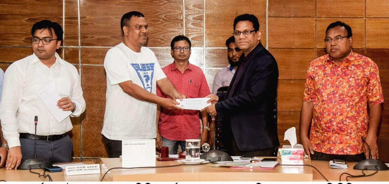 আসন্ন শারদীয় দুর্গাপূজা-২০২৫ উপলক্ষ্যে খুলনা সিটি কর্পোরেশন (কেসিসি) এলাকার ৭৪টি পূজা মণ্ডপে মোট ছয় লাখ ৮৪ হাজার টাকার চেক বিতরণ অনুষ্ঠান আজ (মঙ্গলবার) বিকেলে কেসিসির শহিদ আলতাফ মিলনায়তনে অনুষ্ঠিত হয়। অনুষ্ঠানে প্রধান অতিথি কেসিসি প্রশাসক ও খুলনার বিভাগীয় কমিশনার মোঃ ফিরোজ সরকার মন্ডপগুলোর প্রতিনিধিদের হাতে অনুদানের চেক তুলে দেন।