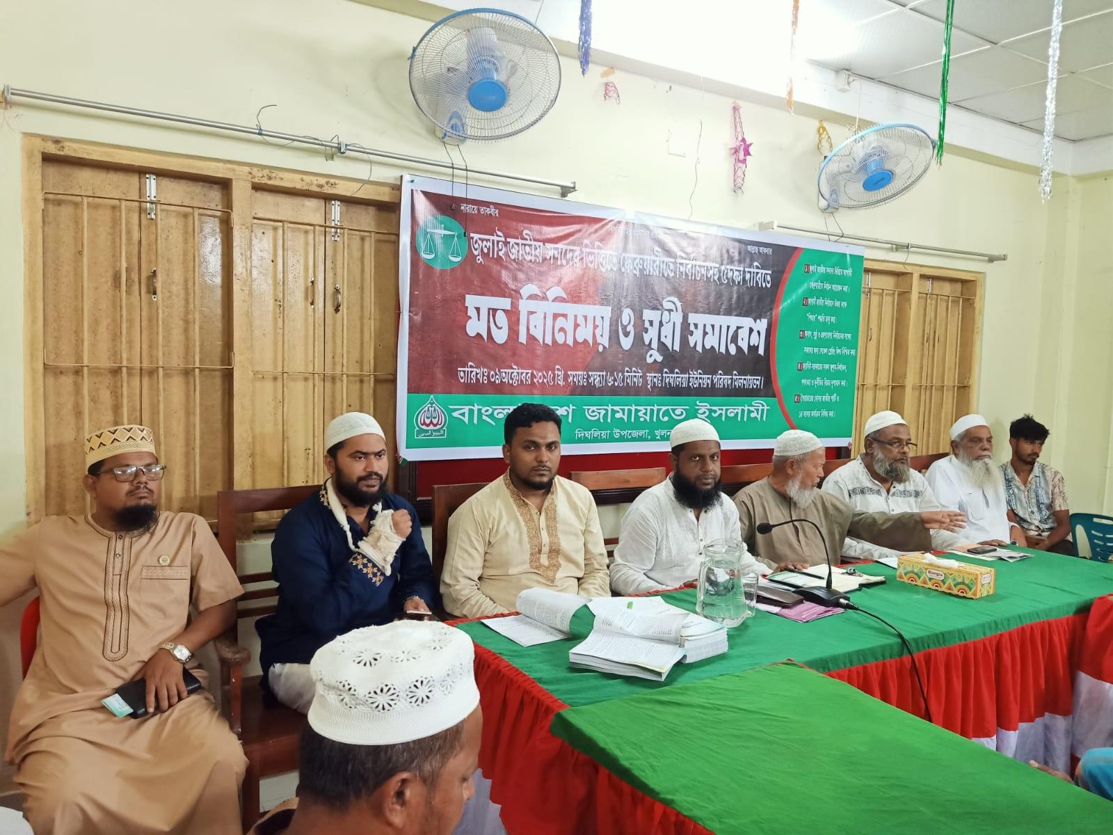 বৃহস্পতিবার (৯ অক্টোবর) বাদ মাগরিব দিঘলিয়া সদর ইউনিয়ন পরিষদ মিলনায়তনে দিঘলিয়া উপজেলা জামায়াতে ইসলামীর সেক্রেটারি মাওলানা মুশফিকুর রহমানের সভাপতিত্বে অনুষ্ঠিত জুলাই জাতীয় সনদের ভিত্তিতে ফেব্রুয়ারিতে নির্বাচনসহ ৫ দফা দাবিতে এক মতবিনিময় ও সুধী সমাবেশে আরো বক্তব্য রাখেন দিঘলিয়া উপজেলা জামায়াতে ইসলামীর সহকারী সেক্রেটারি মোঃ ইসমাইল হোসেন, দিঘলিয়া জামায়াতে ইসলামীর সবেক আমীর মাওলানা শহীদুল্লাহ্, শ্রমিক কল্যাণ ফেডারেশন খুলনা জেলা অফিস ও প্রকাশনা সম্পাদক মোঃ মুজাহিদুল ইসলাম, দিঘলিয়া উপজেলা শ্রমিক কল্যাণ ফেডারেশন দিঘলিয়া উপজেলা শাখার সাধারণ সম্পাদক তাসলিম হাসান টুটুল, উপজেলা জামায়াতে ইসলামীর শুরা ও কর্মপরিষদ সদস্য মোঃ সাইফুল্লাহ মানসুর,। এ অনুষ্ঠানে বিশিষ্ট আলেম মাওলানা মুজিবর রহমান, দিঘলিয়া ইউনিয়ন জামায়াতে ইসলামীর আমীর মাওলানা দেলোয়ার হোসেন মোঃ ইলিয়াস হুসাইন উপস্থিত ছিলেন। এ অনুষ্ঠানে পিআর পদ্ধতি ও নির্বাচনে প্লেয়িং ফিল্ড নিশ্চিত, জুলাই গণঅভ্যুত্থানে শহীদসহ সকল খুন, গুম ও গণহত্যার বিচারের দাবীর উপর বক্তব্য রাখেন মোঃ আবু ইউসুফ, মোঃ রইসুদ্দীন, মোল্যা মাকসুদুল ইসলাম, মকবুল হোসেন, দাউদ আলী সরদার, নুর ইসলাম মোড়ল, শেখ রওশন আজাদ, শওকাত আকবর প্রমুখ।।