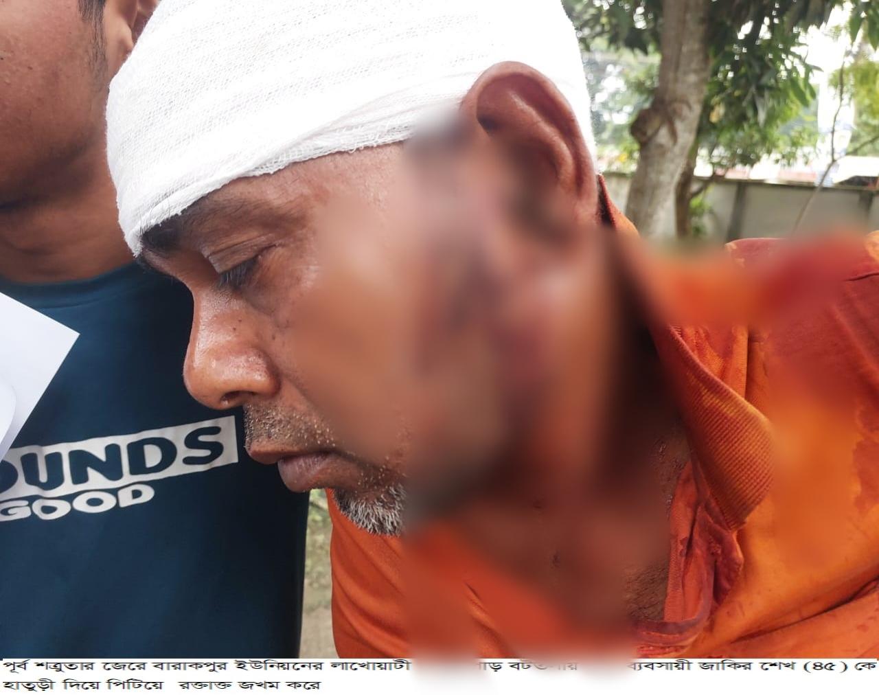 পূর্ব শত্রুতার জেরে খুলনার দিঘলিয়া উপজেলার বারাকপুর ইউনিয়নের লাখোয়াটী দাড়ীরপাড় বটতলায় জাকির শেখ (৪৫) নামে এক ঘের ব্যবসায়ীকে হাতুড়ী দিয়ে পিটিয়ে রক্তাক্ত জখম করা হয়েছে। ৭ অক্টোবর মঙ্গলবার সকাল সাড়ে ১০ টায় গ্রামের চায়ের দোকানে চা পান করার সময় এ ঘটনা ঘটে। আহত জাকির শেখ লাখোয়াটী দাড়িরপাড় পশ্চিমপাড়ার মৃত শেখ আব্দুল মজিদের পুত্র। আহত জাকির বর্তমানে দিঘলিয়া উপজেলা স্বাস্থ্য কেন্দ্রে চিকিৎসাধীন রয়েছেন।