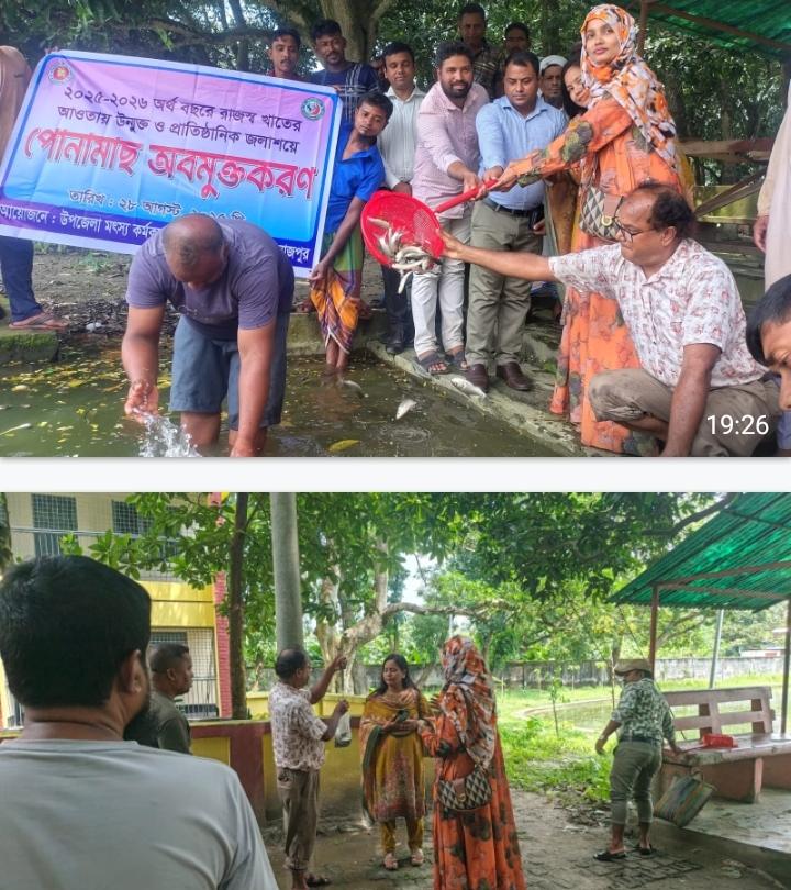 ২০২৫ - ২০২৬ অর্থ বছরের রাজস্ব বাজেটের আওতায় ফুলবাড়ী উপজেলা চত্বের অবস্থিত পুকুরে পোনা মাছ অবমুক্ত করনের মধ্য দিয়ে বিভিন্ন উন্মুক্ত ও প্রাতিষ্ঠানিক জলাশয়ে মাছের পোনা অবমুক্ত করনের কার্যক্রম উদ্বোধনে উপস্থিত ছিলেন ফুলবাড়ী পৌর প্রশাসক ও উপজেলা নির্বাহী অফিসার মোঃ ইসহাক আলী।
