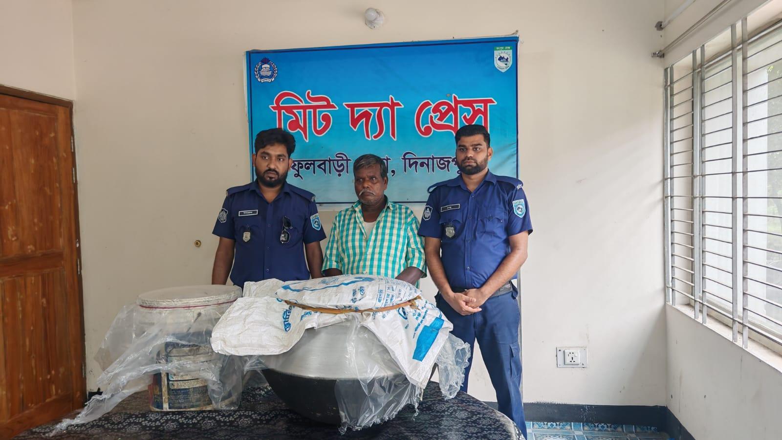 ফুলবাড়ীতে ১০০ লিটার মদ সহ একজনকে গ্রেফতার করেছে থানা পুলিশ