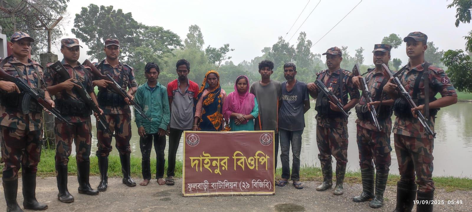 দিনাজপুরের ফুলবাড়ী উপজলার দাইনুর সীমান্তে দিয়ে অবৈধভাবে বাংলাদেশে প্রবেশের সময় ৬ জন বাংলাদেশীকে আটক করেছে ২৯ বিজিবি‘র টহল দল।