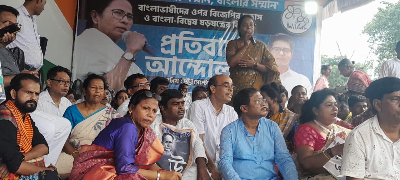 মাননীয় মুখ্যমন্ত্রী মমতা বন্দ্যোপাধ্যায়ের নির্দেশে এবং তৃণমূল কংগ্রেসের সৈনিক অভিষেক বন্দ্যোপাধ্যায় আহবানে, কেন্দ্রীয় সরকারের ভ্রান্ত নীতি, এস আই আর ও বাংলা ভাষাকে পরিবর্তন করার জন্য,, এবং এস আই আর এর নামে, বাঙ্গালীদের ওপর অকথ্য অত্যাচার, এমনকি বিভিন্ন প্রকল্পের টাকা আটকে দেওয়ার বিরুদ্ধে এই প্রতিবাদ সভাও ধরনা চলছে। কেন্দ্রীয় সরকার যেভাবে বাংলার উপর বঞ্চনা শুরু করেছেন, আমরা কখনোই মেনে নেব না, আমরা অন্যায়ের বিরুদ্ধে প্রতিবাদ করে আসছি, যতদিন না কেন্দ্রীয় সরকার আমাদের দাবি মেনে না নেবে, আমরা এই প্রতিবাদ চালিয়ে যাব।