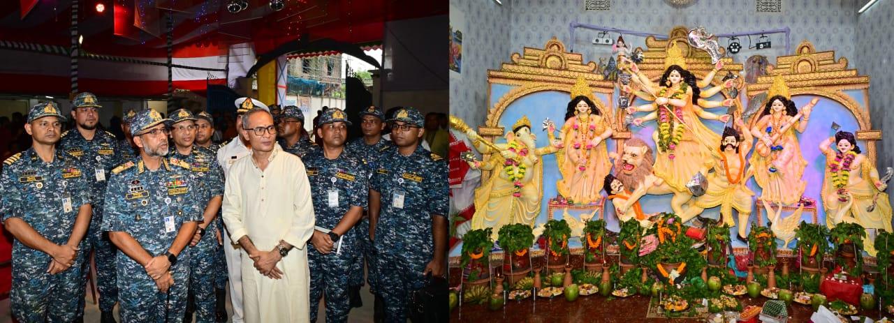 শান্তিপূর্ণ পূজা উদযাপন নিশ্চিতকল্পে পূজামন্ডপ পরিদর্শন করলেন কমান্ডার ঢাকা নৌ অঞ্চল