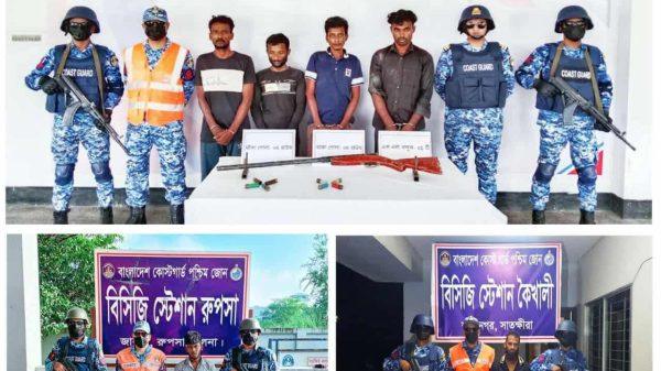 মহিদুল ইসলাম(শাহীন)বাংলার চেতনা নিউজ খুলনা। সুন্দরবন ও খুলনায় কোস্ট গার্ডের পৃথক ৩ টি অভিযানে দেশীয় আগ্নেয়াস্ত্র, দেশীয় অস্ত্র, গোলাবারুদ ও মাদকসহ ৬ জন আটক হয়েছে। শনিবার ৬ সেপ্টেম্বর ২০২৫
