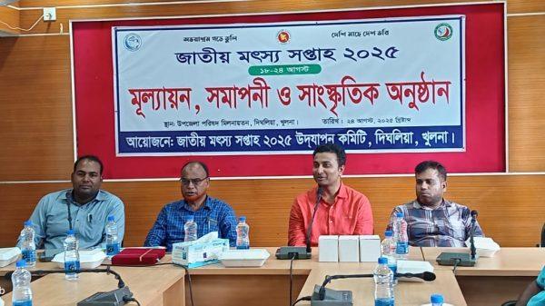 এস.এম.শামীম, দিঘলিয়া খুলনা বাংলার চেতনা নিউজ। খুলনার দিঘলিয়া উপজেলায় জাতীয় মৎস্য সপ্তাহ ২০২৫ উপলক্ষে মূল্যায়ন, সমাপনী ও সাংস্কৃতিক অনুষ্ঠান অনুষ্ঠিত হয়েছে। ২৪শে আগস্ট উপজেলা পরিষদ মিলনায়তনে সভায় সভাপতিত্ব করেন উপজেলা