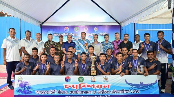 নিজস্ব প্রতিনিধি,বাংলার চেতনা নিউজ। ১৮ সেপ্টেম্বর ২০২৫: বাংলাদেশ নৌবাহিনীর ব্যবস্থাপনায় আন্তঃবাহিনী “সাঁতার, ওয়াটারপোলো ও ডাইভিং প্রতিযোগিতা-২০২৫’ আজ বৃহস্পতিবার (১৮-০৯-২০২৫) ঢাকার বনানীস্থ নৌবাহিনী সদর দপ্তর সুইমিং কমপ্লেক্সে সমাপ্ত হয়েছে। প্রতিযোগিতার সমাপনী