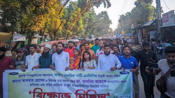 মোঃ আশরাফুল ইসলাম স্টাফ রিপোর্টার বাংলার চেতনা নিউজ। জুলাই গণঅভ্যুত্থানের সমন্বয়ক জাতীয় নাগরিক পার্টি-এনসিপির সদস্য সচিব আখতার হোসেন ও সিনিয়র যুগ্ম-সদস্য সচিব ডা. তাসনিম জারাকে অপমানিত করার প্রতিবাদে এবং পতিত