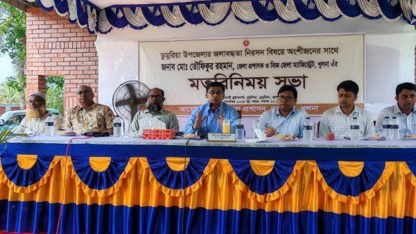 শেখ মাহতাব হোসেন ডুমুরিয়া খুলনা বাংলার চেতনা নিউজ। ডুমুরিয়া উপজেলা প্রশাসনের আয়োজনে শনিবার ১৩ সেপ্টেম্বর সকাল ১০টায় ডুমুরিয়া উপজেলা শৈলমারি সুইসগেট এলাকায় জলাবদ্ধতা নিরসনের দাবিতে মতবিনিময় সভা অনুষ্ঠিত হয় সভায়